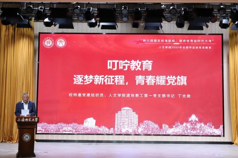 5月28日,人文学院关工分会“持八项规定校准航标,续赤忱奔赴时代大考”——2025届毕业生党员教育在教苑楼多功能厅举行。校特邀党建组织员、关工委讲师团成员、人文学院关工分会副主任丁光勋应邀出席。丁光勋老师作《逐梦新征程,青春耀党旗》“叮咛”教育党课。“中国梦是我们的,更是你们青年一代的。”丁老师引用习近平总书记的讲话,希望毕业生党员们坚守理想信念,做信仰坚定的“追光者”;勇于担当,做实干笃行的“奋进者”;保持廉洁自律,做清正廉洁的“守护者”;传承红色基因,做红色精神的“传承者”。