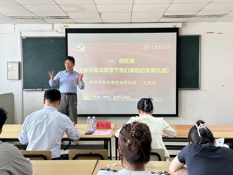 5月15日,体育学院关工分会举行2025届毕业生党员集中教育。校特邀党建组织员王旭川带领全体毕业生党员重温入党誓词,并以《在百年变局中彰显青年党员的时代担当——从中美经贸摩擦看中国发展新机遇》为题讲授专题微党课。他深入剖析当前国际形势,鼓励当代青年党员生逢中华民族发展的最好时期,必须胸怀“国之大者”,以“功成不必在我”的精神境界和“功成必定有我”的历史担当,在体育强国建设、健康中国战略实施中勇挑重担,让青春在服务国家战略中绽放光彩。