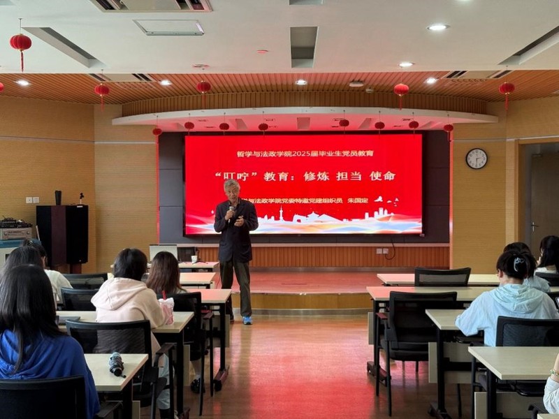 5月7日,校特邀党建组织员、关工委讲师团成员、哲学与法政学院关工分会副主任朱国定受邀为哲学与法政学院毕业生党员作“叮咛”教育。他从道德修养谈到党性修养,从理性思考谈到政治信仰,从心态调整谈到健康人格,从人生选择谈到责任担当。他希望毕业生们要学会思考,学会实践,学会学习,学会生活,在今后新的岗位上不断展现共产党员的风采。