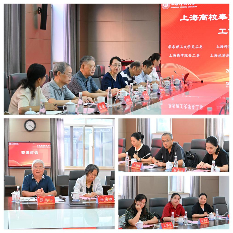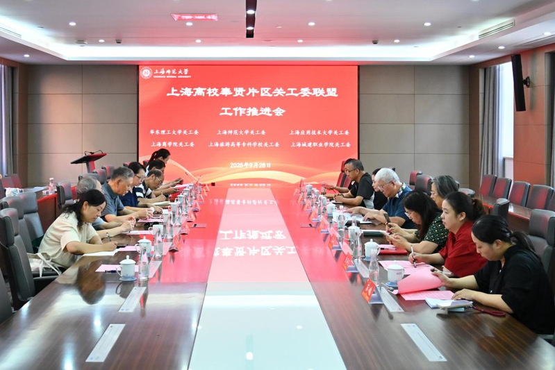 9月28日上午,上海高校奉贤片区关工委联盟工作会议在我校徐汇校区外宾楼101会议室举行。来自华东理工大学、上海师范大学、上海应用技术大学、上海商学院、上海旅游高等专科学校、上海城建职业学院等联盟单位的副理事长、秘书长,以及上海师范大学关工委理论研究基地成员近20人参加了会议。会议由联盟副理事长、校离退休工作部(处)部(处)长唐娟芳主持。