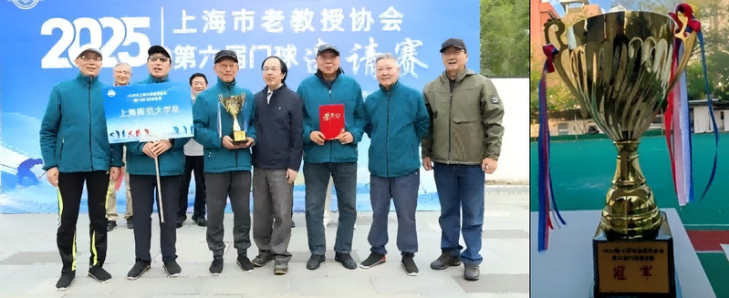 比赛结束后,中国老教授协会副会长、上海市老教授协会会长王建磐为门球队颁发了冠军奖杯和荣誉证书,并合影留念。