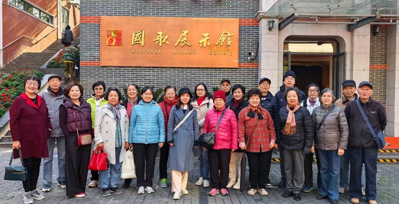 11月19日,天气骤寒,最高气温仅有11度。老教授们不畏严寒,精神饱满地从徐汇校区出发,经过一个小时的行程到达国歌展示馆。