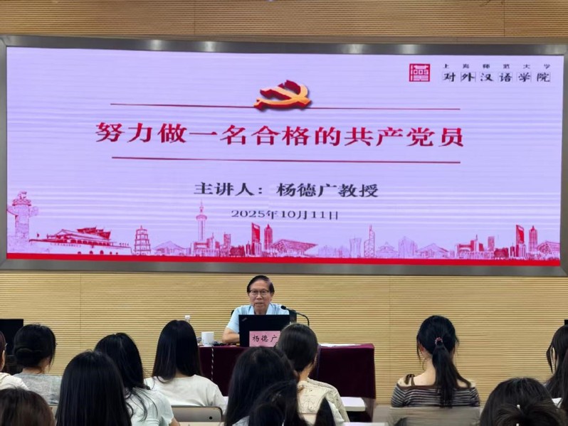 为深入贯彻党的教育方针,引导2025级研究生新生坚定理想信念,积极向党组织靠拢,10月11日,上海师范大学对外汉语学院特邀“杨德广工作室”导师、老校长杨德广教授以《努力做一名合格的共产党员》为题作专题讲座。