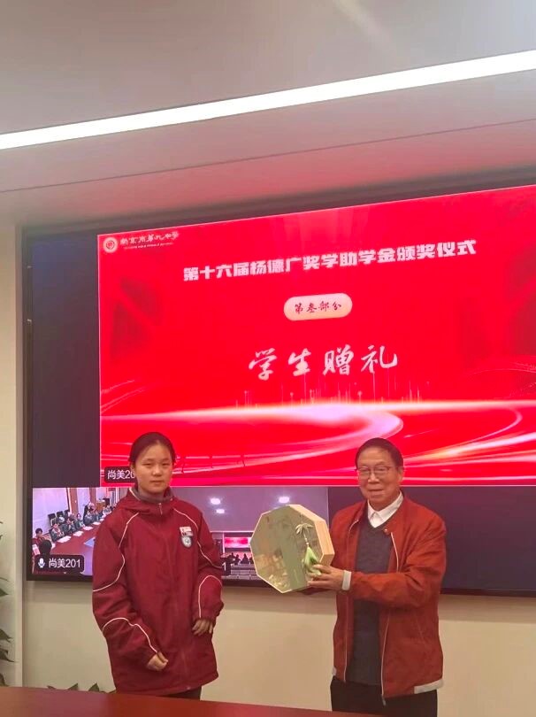 下午,第十六届“杨德广奖学助学金”颁奖仪式在庄严温馨的氛围中拉开帷幕。颁奖现场,杨校长亲自为同学们赠送书籍,扉页上“以书为友,以学为梯”的寄语,既是一位长者对知识力量的深刻感悟,更是对学子的勉励和期望。