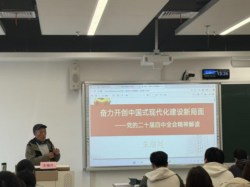 校特邀党建组织员、关工委讲师团成员、学院关工分会副主任朱瑞兴老师为学员们作题为《奋力开创中国式现代化建设新局面》的党课。他结合自身经历,从新中国发展的重大变迁谈起,围绕党的二十届四中全会精神和“十五五”规划,阐释了创新型人才在国家建设中的关键作用。他指出,新质生产力的培育离不开科技创新的引领,当前正是AI迅速发展、跨领域融合、多学科协同的重要阶段,他勉励数理学子主动投身创新实践,在不断探索中丰富学识、完善认知,以扎实的专业能力和更加自信的姿态迎接前沿领域的机遇与挑战,为强国建设、民族复兴贡献青春力量。